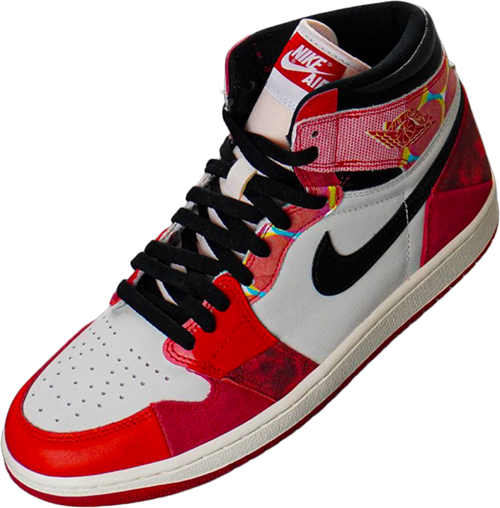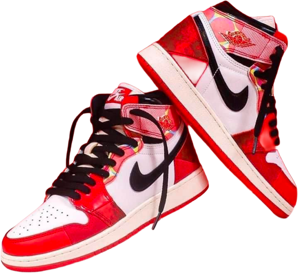La Jordan 1 “Spiderman: Across the Spider-Verse” (2023) se distingue par un design volontairement irrégulier et artistique, inspiré du style visuel du film. Contrairement au modèle de 2018, cette version adopte une approche patchwork assumée, avec des panneaux aux teintes de rouge différentes et des finitions variées, donnant l’impression d’un assemblage issu de plusieurs dimensions.